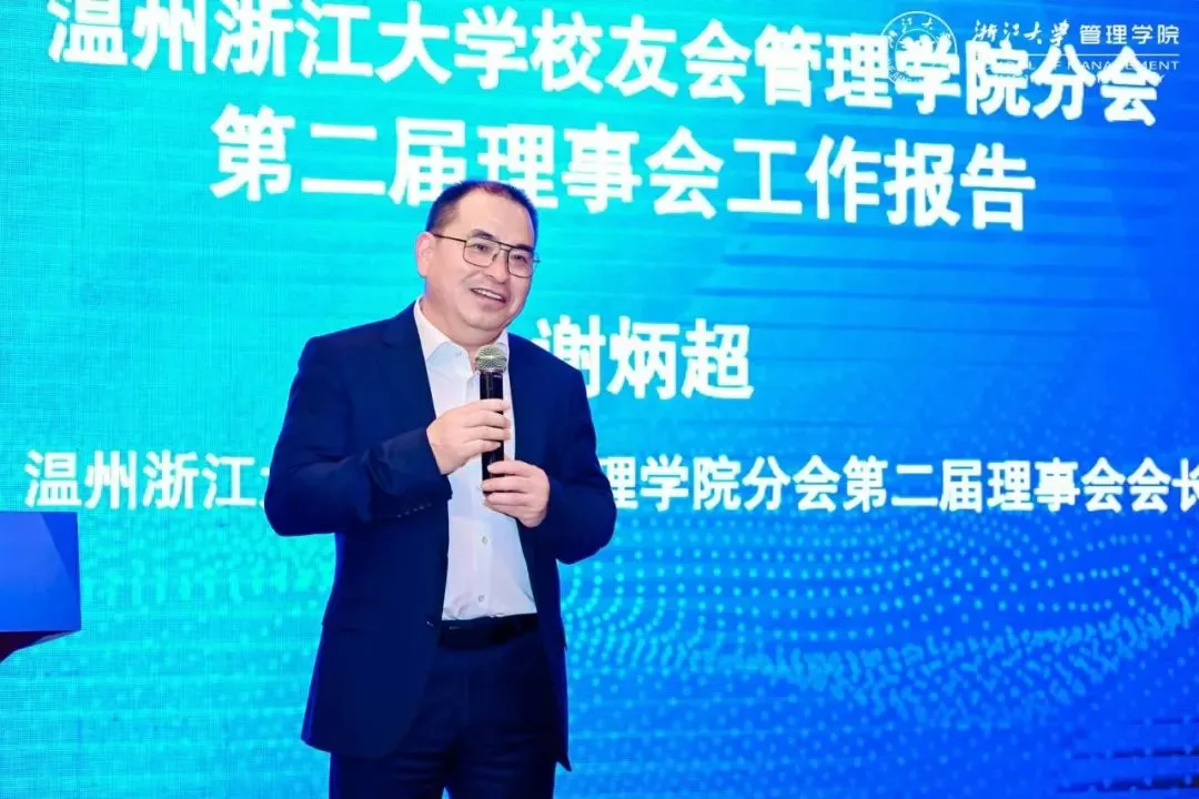 谢炳超作了工作报告。温州浙江大学管理学院分会始终秉持着“加强浙江大学管理学院温州地区校友与母校、母院及校友之间的联系,推动产业发展、人才培养和创新创业方面的合作”的宗旨,积极开展校友工作,不断凝聚校友情感,努力推动校企合作、院企合作,努力践行母院倡导的价值观,发展成为中国社会发展的健康力量。谢会长提到,温州校友们不仅关注母校的发展,还积极参与校友活动,形成了良好的互动氛围。