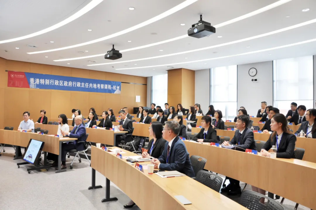 10月15日上午,香港特别行政区政府行政主任内地考察课程—杭州(第一期)开班典礼在浙江大学紫金港校区管理学院新大楼举行。来自香港特别行政区政府不同政策局及部门的40名行政主任参加了本期课程。